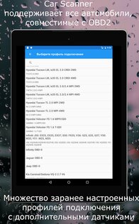 - Car Scanner включает в себя заранее настроенные профили подключения для самых разных автомобилей.