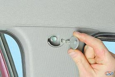 8. Подденьте декоративную заглушку болта верхнего крепления облицовки.