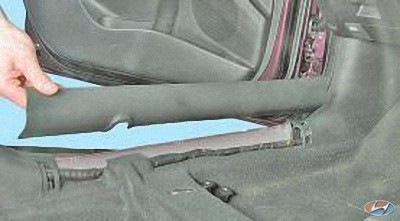 17. Аналогичным образом снимите нижнюю облицовку задней стойки кузова.