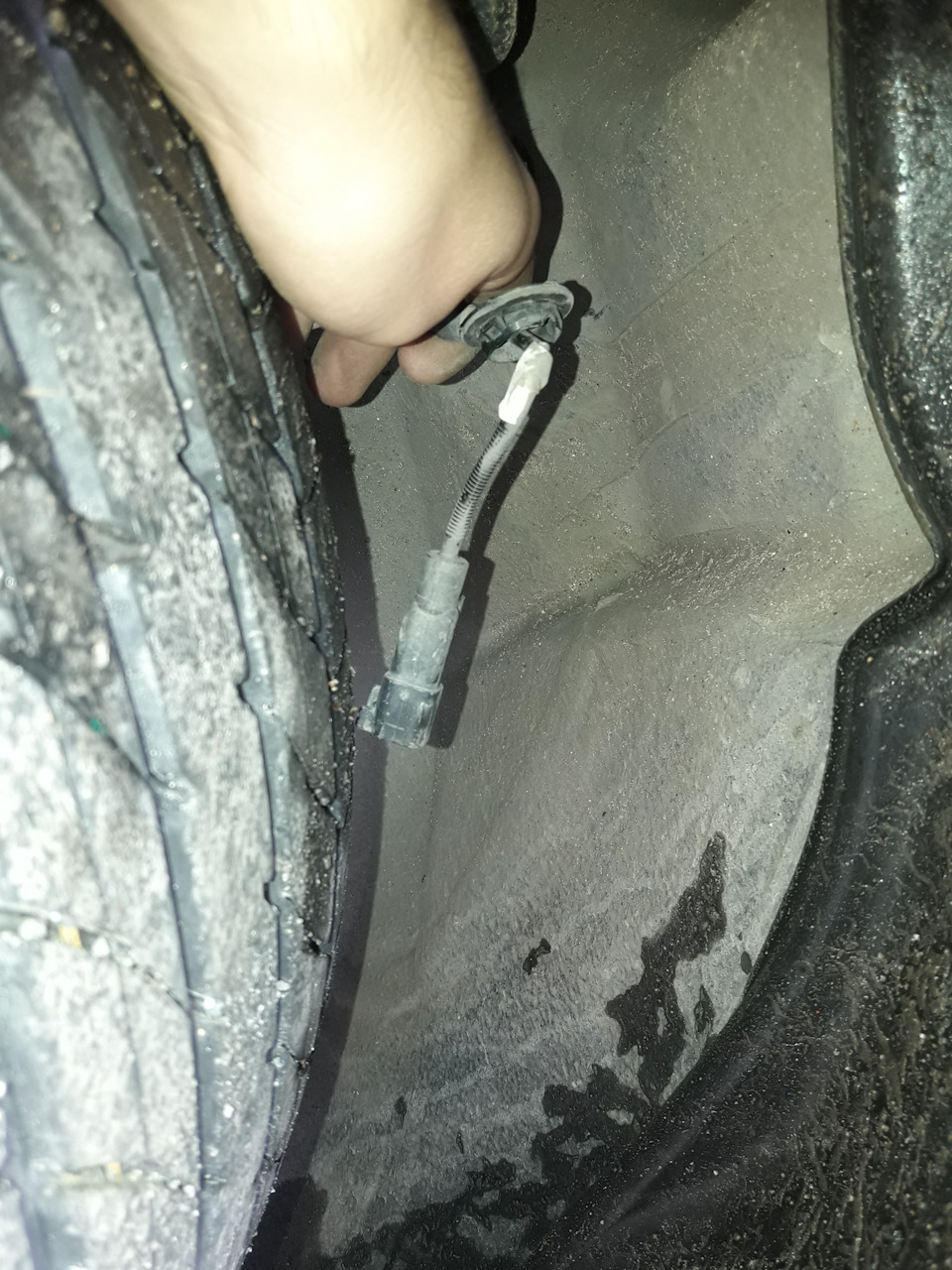 Вначале снял фишку датчика абс, провод идет от ступицы и заходит через арку в подкапотное пространство, где и стоит фишка, которую нужно рассоединить, а провод вытащить через отверстие, чтобы не порвать.