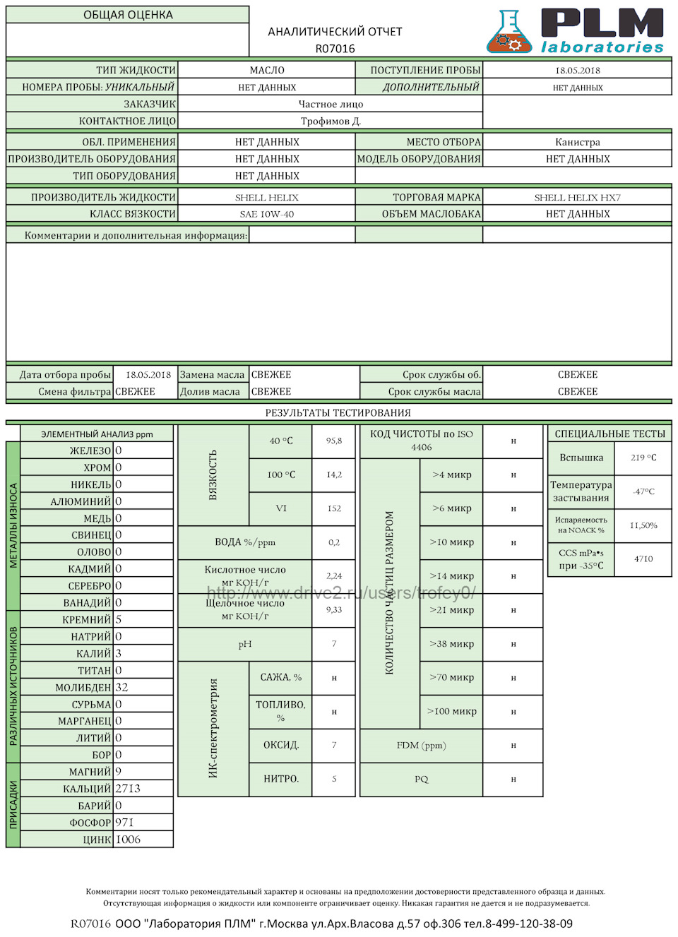 И сегодня на повестке дня разбор результатов анализа моторного масла Shell Helix HX7 10W-40, произведенного в г. Торжок.