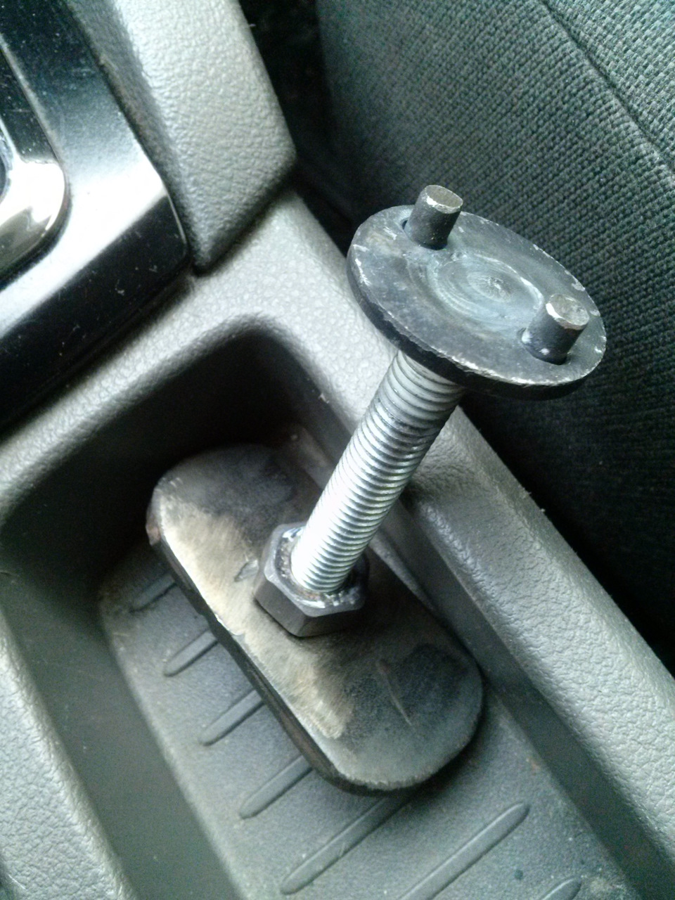 Вечером после работы снял колесо, открутил суппорт, извлек износившиеся колодки, воспользовался самодельным приспособлением для вдавливания поршня суппорта…но ничего не вышло, поршень не вдавливался, приспособа сломалась.