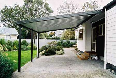 3. Навесы с плоской крышей. Такой тип постройки является наиболее простым в установке. Строятся такие конструкции быстро, строительных навыков не требуют. Однако на плоской части крыши регулярно скапливается мусор, под весом которого доски могут просесть, что приведет к накоплению воды. Поэтому нужно часто чистить крышу, во избежание гниения каркаса и крыши.