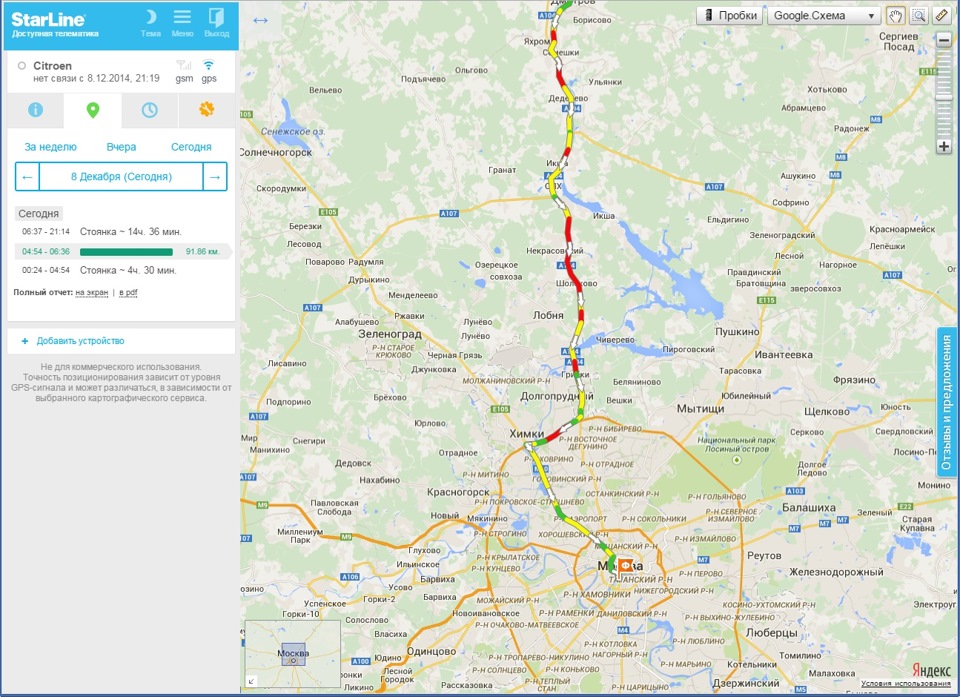 Разучили ставиться/сниматься старлайн с ключа впринципе. Теперь в основном охрана старлайна выключена. Во первых она смотрит на двери, багажник и капот по CAN-шине. Это же самое делает и штатная сигнализация. Во вторых Акселерометр в М32 равносилен примерно датчику наклона в штатной сигнализации. При том штатная еще имеет датчики объема. И изначально ставилась задача автозапуска, а не защиты от угона и вскрытия. Как плюс можно послушать салон с телефона( у м32 имеется микрофон), и Телематика — довольно интересный сервис. Пишет Трэки и превышения скорости, время стоянки — довольно забавная штука.