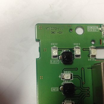 Разбираем лицевую панель. Ее плата выглядит следующим образом. Проверяем наличие трещины в плате. Наличие массы в панельке проверяем в нескольких точках (при подключенной панельке). GND в панельке контролируется через обратную связь DGND. Также проверяем состояние ломелей между панелькой и магнитолой.
