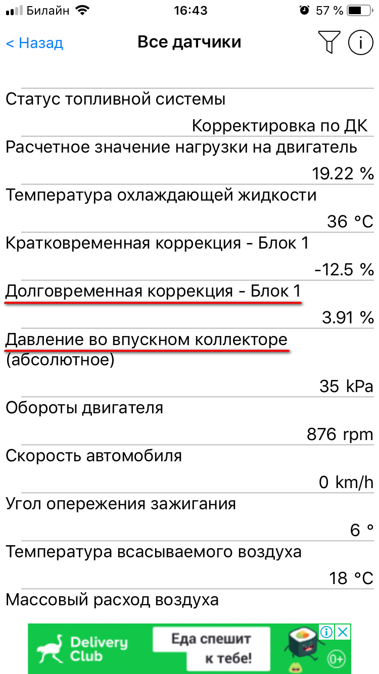 Установил все на свои места, подключился к ELM и начал смотреть как будет себя вести долговременная коррекция.