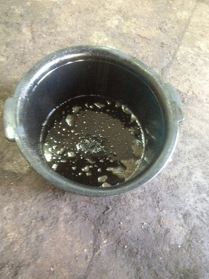 Прошли выходные, привезли масло и сразу же на стенд, под замену. В качестве профилактики заменил и масляный фильтр. Дальше больше, сливаем мы значит масло и…сказать что я выпал в осадок это ничего не сказать, тут я конкретно а#!;&%… Масло чёрное! Чёрное, Карл! Спустя неделю! Это вообще ни в какие рамки не лезет. Я понимаю, что оно дешёвое (1100 руб, дешёвое, дожили), но хотя бы пусть оно сгорит к 5000 км, а не через неделю. Вот вам фото, для наглядности: