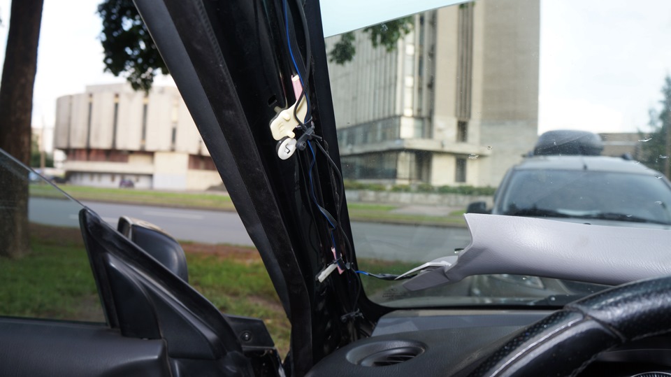 - Все провода, протягиваемые по салону и в багажнике обязательно надо закрепить и спрятать. Это поможет избежать неожиданных обрывов сети во время движения.