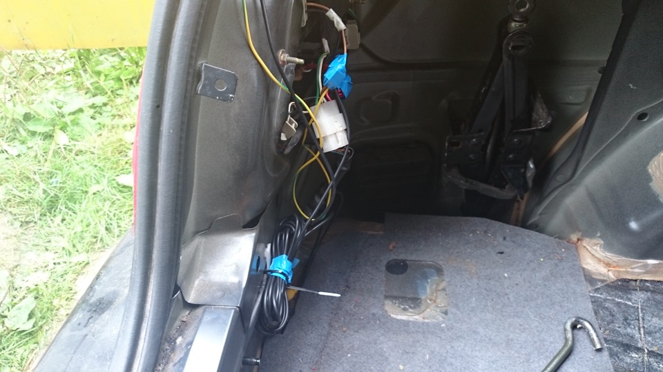 Меняем рамку на рамку с камерой. Под бампером находим отверстие в багажник для проводки +, -, колокольчика.