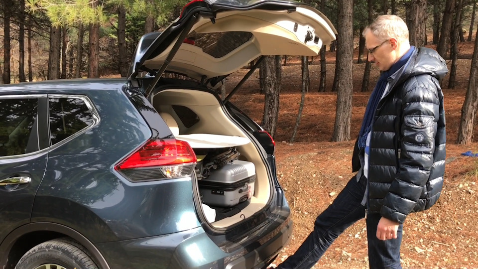 С вместительностью у X-Trail и было хорошо, а сейчас багажник обзавелся подпольем для мелочовки. Приятный бонус почти всех комплектаций — пятую дверь можно открыть, махнув ногой под бампером, при этом дистанционный электропривод крышки багажника доступен и с фирменного брелока iKey. Удобно!