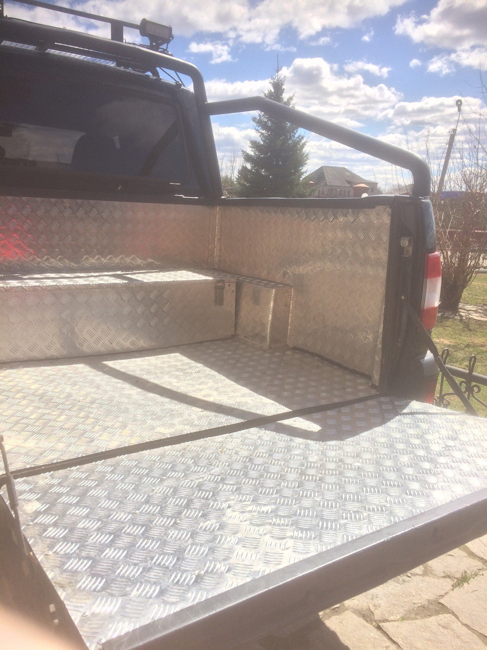В сентябре 2017 года обшили кузов рифлёным алюминием и сделали ящик для мелочёвки, которая постоянно таскается в кузове.