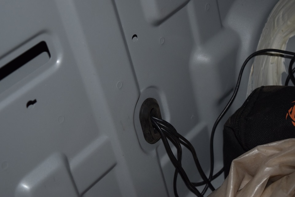 Далее приступаем к прокладке проводов от каждого датчика в салон. Провода заводил через заглушку (сделав в ней отверстие) в задней части, под пластиковой накладкой (которую демонтировали ранее) со стороны водителя.