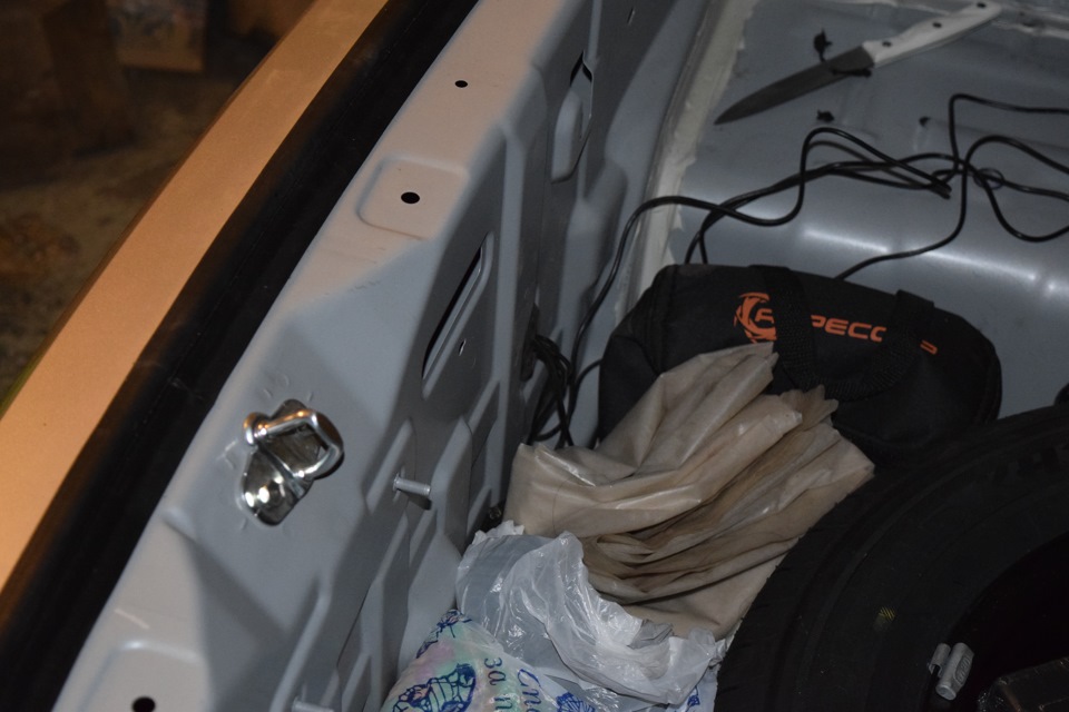 - Разборка боковой стороны багажника для крепления блока питания прибора.