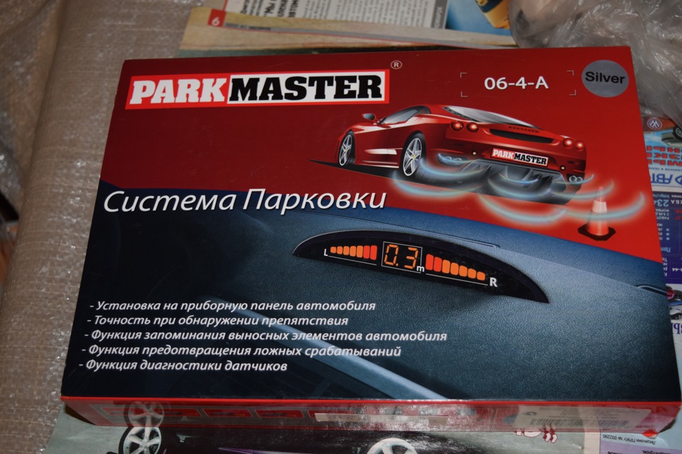 Про этот электронный помощник думал еще с момента покупки, но до покупки и установки добрался только сейчас. Речь идет о парктронике. Был заказан в “Юлмарте” и приобретен парктроник parkmaster 06-4-a silver (то бишь с серебристыми датчиками). Цена вопроса 2443 р.