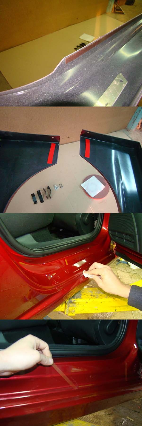 Закончив с предварительной подготовкой, наносим праймер и наклеиваем Двухсторонний скотч на сами пороги.