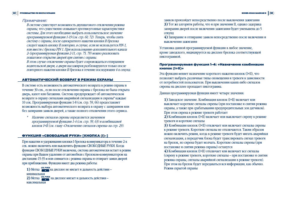либо дверь автомобиля во время движения. Программируемая функция 1-2