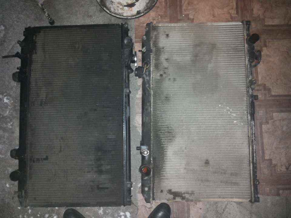 сравнил радиаторы, оказалось что у лексуса радиатор толще чем у аристы, на ото видно. больше отличий не было, просто перекинул все что снимается со своего радика на новый, и поставил на место.