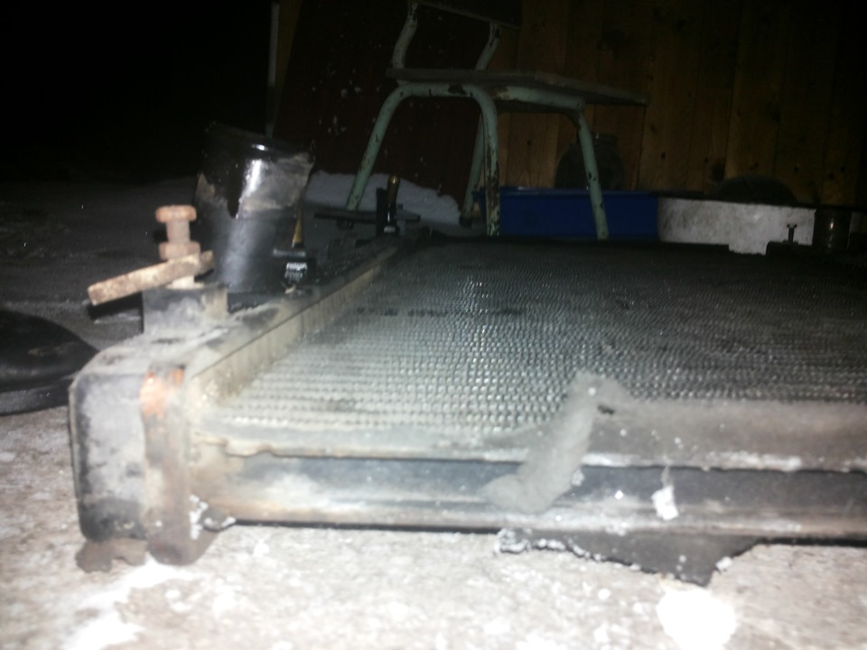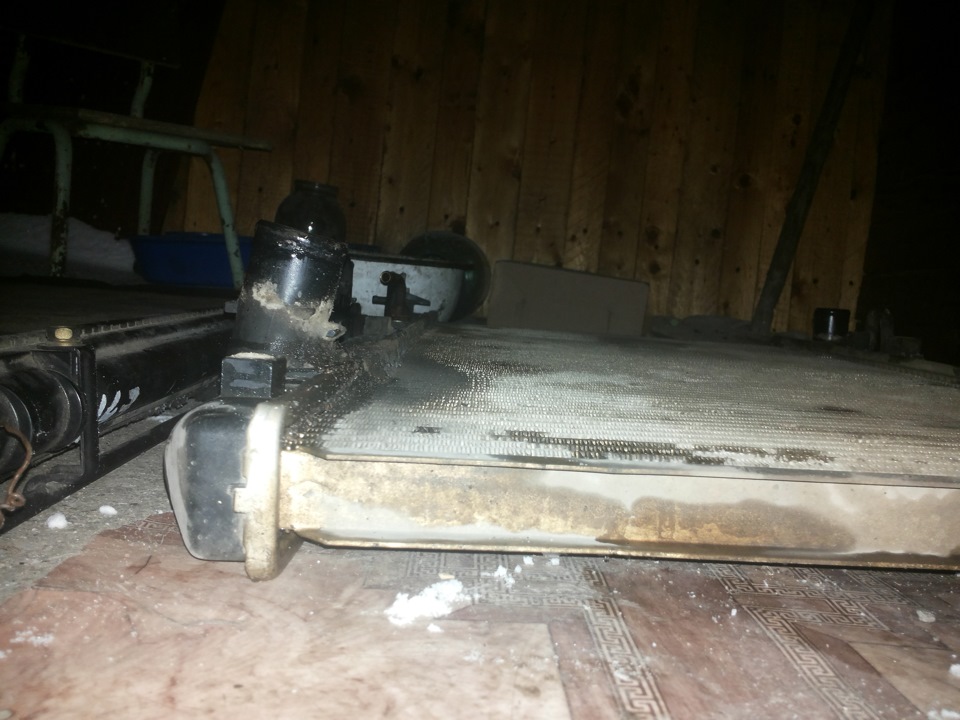 для начала слил весь антифриз (слить его можно двумя способами: открутить сливную пробку в блоке под выпускным коллектором, или с радиатора, я сделал и то и другое), и снял радиатор. как оказалось — снимается он не сложно: