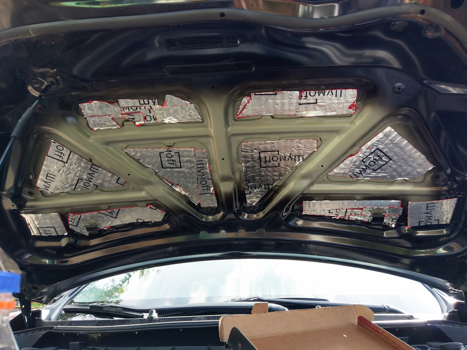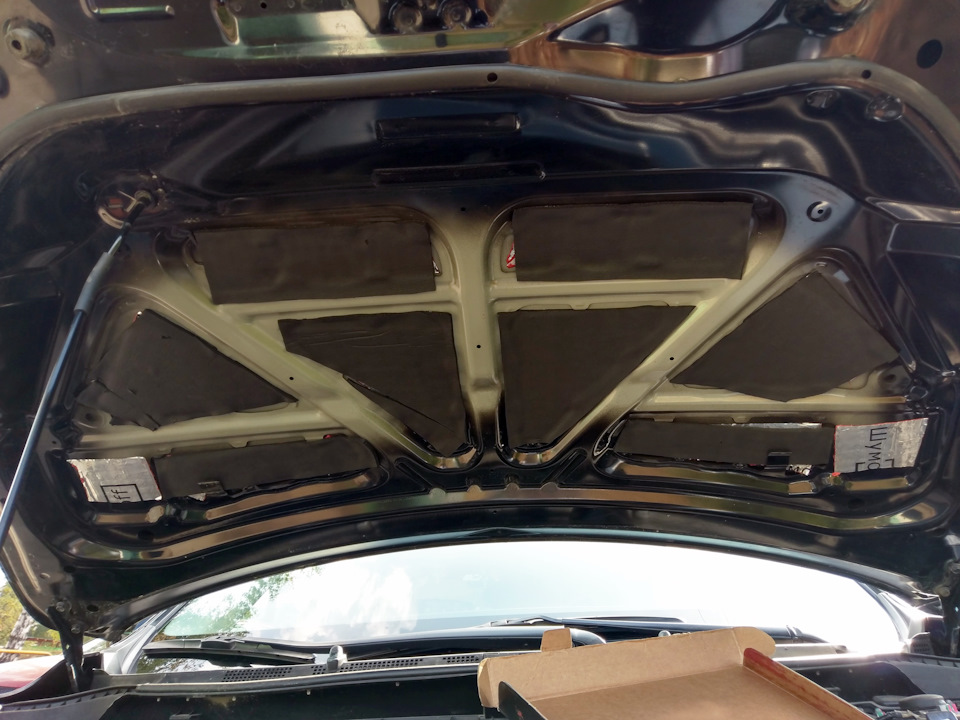 Это поможет снизить шум от двигателя и убрать не приятный дребезг металла при закрытии капота.