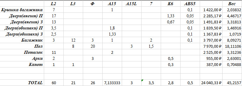 Ну и расчет всего потраченного материала поэлементно: