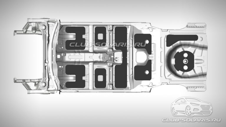 Конструктивной особенностью Солярисов является жесткая подвеска, поэтому все шероховатости дороги передаются на кузов и проявляются в салоне в виде гула и дребезжания. Чтобы избавиться от шумов, необходимо обработать следующие элементы автомобиля.