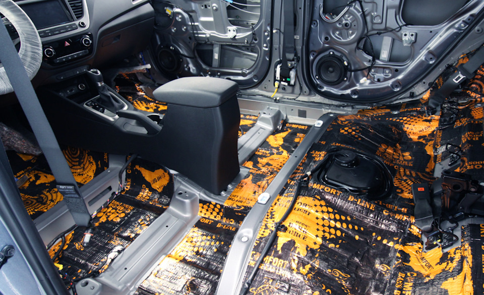 Этапы шумоизоляции Хендай Солярис 2011,2014, 2017