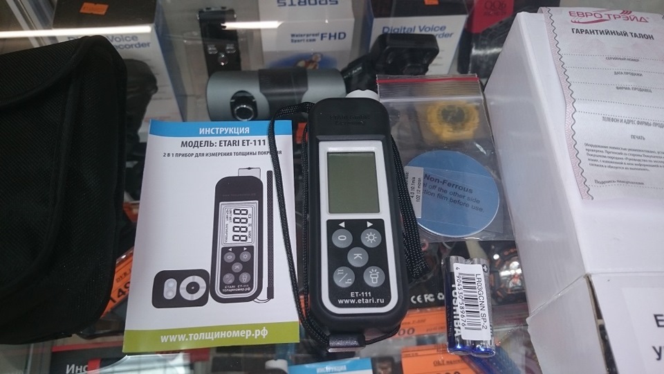 Новинка 2013г. Толщиномер ет от компании «Евротрейд». Аналогичен толщиномеру et 110. Только есть возможность измерений по черным и цветным металлам. Прорезиненный чехол удобен и не пачкается. Очень хороший прибор и по своим характеристикам и по надежности! Практически не требует калибровки! Рекомендуем!