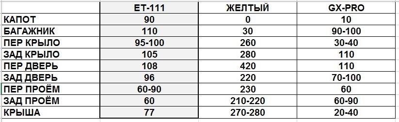 Странно, что отсутствует закономерность в погрешностях измерений, отсюда напрашивается вывод, что дело могло быть не только в толщиномерах! А конкретно по модели GX PRO просмотрел много тестов и ваш самый можно сказать разбежистый) Конечно не буду лезть горой в защиту бюджетного толщинометра, но по-моему мнению и по вашему тесту для обычного автовладельца нет смысла покупать толщиномер с точность в 1 мкм. Ну лично я для себя решил взять GX PRO, потому что для выявления наличия шпатлёвки и мест перекраски он отлично подходит. По вашему тесту так он совсем немного ошибался по сравнению с “эталонным” толщиномером, а показания капота и крыши считаю аномалией, ведь везде он показал как положено. Но даже если он показал меньше положеного, всё-равно суть не меняется и капот с крышей в норме. А для чего точность в 1 мкм честно говоря не догадываюсь даже) Судя по разбежкам толщины лкп новой машины, можно сказать, что точности в 10 мкм с лихвой хватит, чтобы разобраться с интересующим участком авто. Большой минус дешёвых толщиномеров в том, что им для точного измерения нужны идеальные условия и даже малейшие отхождения приводят к непредсказуемым показаниям, а качественный очень чётко всё показывает! Но можно вместо 5-6 измерений произвести 20-30 и сделать соответствующий вывод по интересующему месту. Скоро приедет GX и постараюсь не забыть отписать как у меня получилось им намерять)