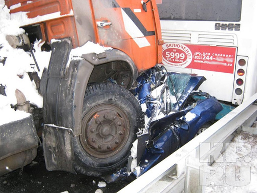 Наверное, все нижегородцы помнят о самой страшной аварии на нижегородском метромосту за всю его недолгую историю. Она унесла жизни трех человек, еще четверо пассажиров социального автобуса получили травмы (подробнее). Напомним, 16 марта в 17.15 на съезде с моста не справился с управлением 35-летний шофер « КамАЗа » Сергей Щедрин (имя и фамилия изменены), и многотонная махина, груженная снегом, буквально подмяла под себя «Шевроле Лачетти», в котором в это время находились три женщины 28, 30 и 57 лет. Шансов выжить у водителя и ее сослуживиц из ОАО «Горгаз» не было. После этого «КамАЗ» столкнулся с автобусом 45-го маршрута, в котором было свыше восьмидесяти пассажиров. А «ЛиАЗ» в свою очередь стукнул «Форд», и далее пошло по цепочке. Всего, по данным ГИБДД , в этом столкновении пострадали шесть автомобилей.